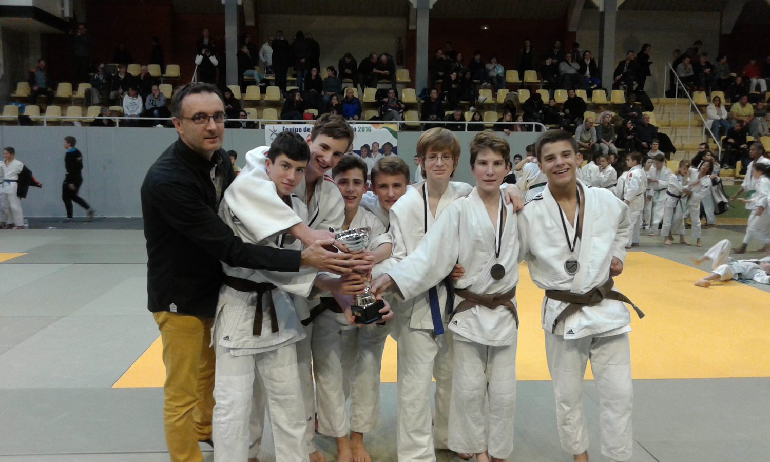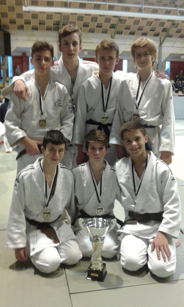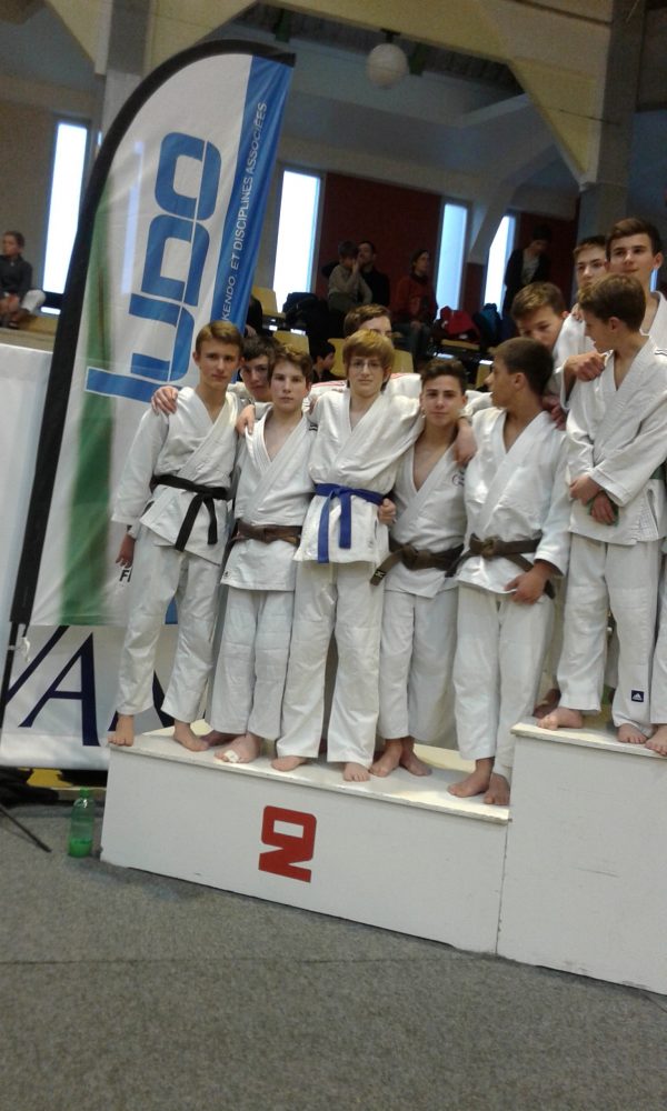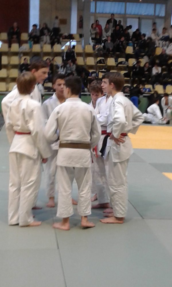L’ équipe cornouaillaise Minimes Masculine se qualifie pour le bretagne qui se déroulera le 11 décembre à Vannes. Avec un absent en -73kg et le renfort en -38kg de Pierre louis Sauvage du dojo de AL Pont L Abbé, les gars se classent deuxieme de poule et s’inclinent sur le fil en demie finale face à Seibukan. Comme l’an dernier l’équipe se classe troisième du finistère. Félicitations aux 15 officiels (commisaires et arbitres) présents et bon rétablissement aux deux -55kg: Gwendal Tymen (-55kg) fracture du poignet lors du championnat qui était le remplaçant de Luke Jaouen lui aussi victime d’une fracture du poignet vendredi soir.