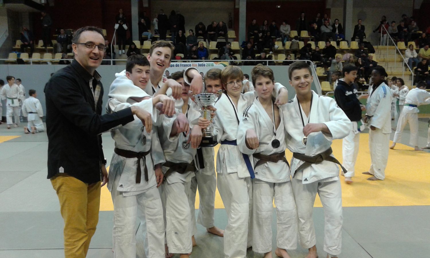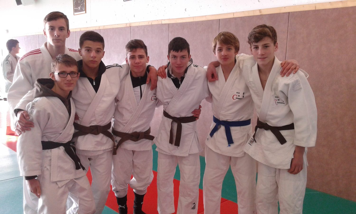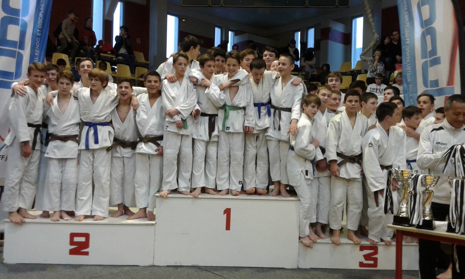 L’ équipe cornouaillaise Minimes Masculine se qualifie pour le bretagne qui se déroulera le 11 décembre à Vannes. Avec un absent en -73kg et le renfort en -38kg de Pierre louis Sauvage du dojo de AL Pont L Abbé, les gars se classent deuxieme de poule et s’inclinent sur le fil en demie finale face à Seibukan. Comme l’an dernier l’équipe se classe troisième du finistère. Félicitations aux 15 officiels (commisaires et arbitres) présents et bon rétablissement aux deux -55kg: Gwendal Tymen (-55kg) fracture du poignet lors du championnat qui était le remplaçant de Luke Jaouen lui aussi victime d’une fracture du poignet vendredi soir.