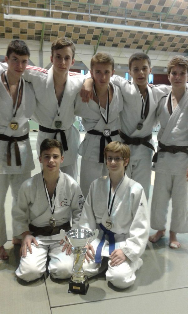 Après une troisième place il y a deux semaines des Minimes garçons au championnat du Finistère, les cornouaillais rééditent une belle perf ‘. Malgré l’absence d’un -38kg et d’un -73kg, l’équipe exclusivement composés de combattants du club était prête a en découdre avec les autres formations bretonnes . Avec des combats très serrés dès le premier tour ,(Dojo Pays de Lorient 1) le ton était donné pour le reste de la journée. Des combats rugueux bien menés permettent à l’équipe de se classer vice- championne de Bretagne en s’inclinant en Finale (association Vitrée/DC Janzéen). C’est satisfaisant pour ce groupe, qui n’a rien laché du début à la fin en éliminant successivement dojo pays de Lorient 1, Passion Judo35, Dojo Pays de Lorient 2 . Pour la saison qui redémarre dès janvier beaucoup passent Cadets et avec les compétitions individuels a venir, il faudra confirmer cette belle progression générale. A noter l’élimination prématurée des benjamins, qui s’inclinent dès lepremier tour sans démériter mais avec un certain regret d’etre passé a coté de ce championnat.