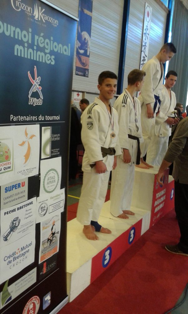 9 minimes des differentes sections du dojo de cornouaille ont fait le déplacement au tournoi régional de Crozon, dernier tournoi individuel de la saison. Brendan Fustemberg remporte la catégorie des -42kg (après une deuxième place à Ploermel il y a quinze jours) et Steven Rio prend une méritante troisième place sur le podium en -60kg , Evan Leclerc et Ilan Morvan en -50kg se classent 5ième et ainsi que Valentin Lucas en -66kg. Une 9ième place pour Mattéo Soufflard.