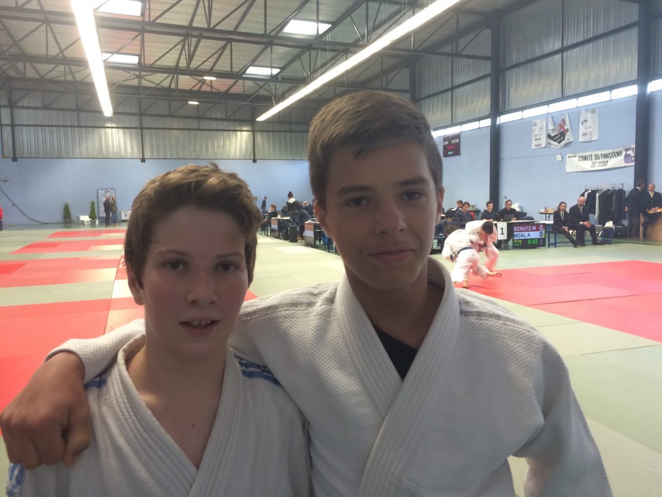 Comme la semaine dernière pour les benjamins, pas de titre mais de beaux combats avec 2 qualifications pour le niveau national pour Evan Leclerc(-46kg) deuxième et Steven Rio (-55kg) troisième qui intégreront tous les deux le pole espoir de Rennes dès la rentrée prochaine. Brendan Fustemberg (-42kg) sera remplaçant de sa catégorie pour la coupe de France avec sa quatrième place.