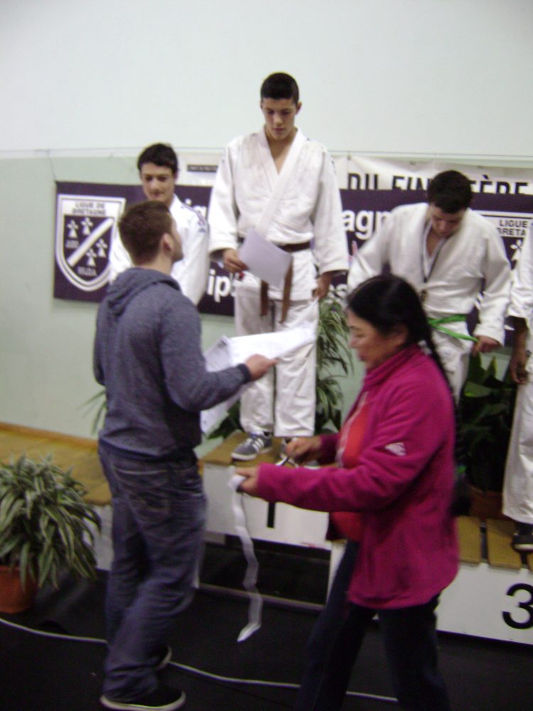 Dimanche 28 Mars 5 minimes du Dojo de Cornouaille participaient au championnat de bretagne. En -73kg Une belle competition pour Gueram Razharian qui se classe second synonyme de qualification direct aux interregions. A noter qu’Henri Ravallec et Benoit Lehenaff seront aussi présent en tant qu’officiels le 25 Avril à Vitré.