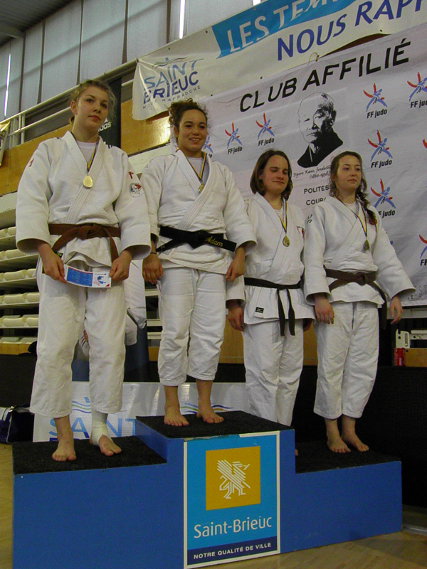 Le Dojo de Cornouaille, et ses combattantes Chloe Adam, Pauline Bourhis et Annaelle Cornec (ainsi que Juliette loncle -48 (Dinan) et Solenn Houssais (-57) Dojo des Abers) étaient encore présentes.