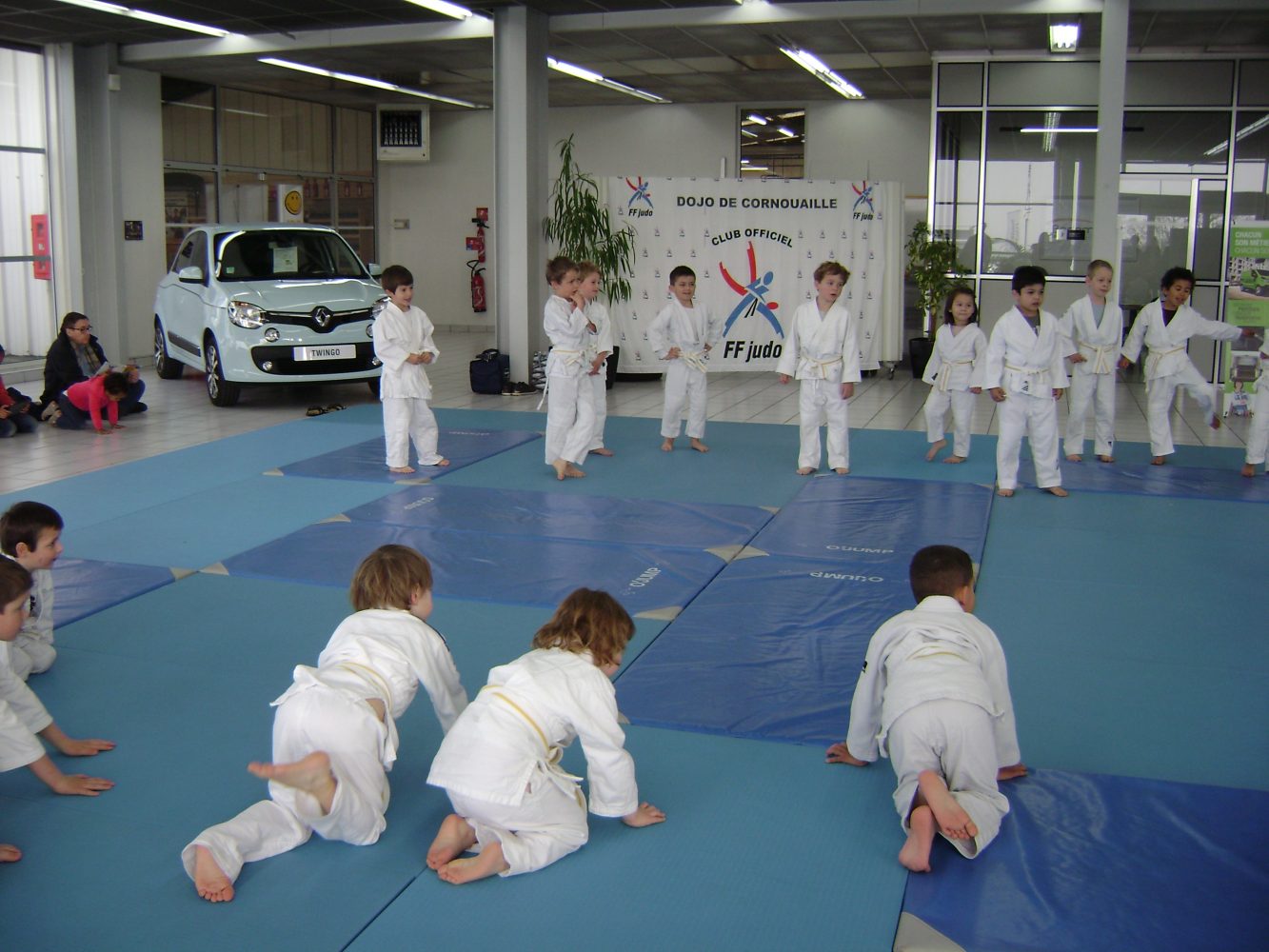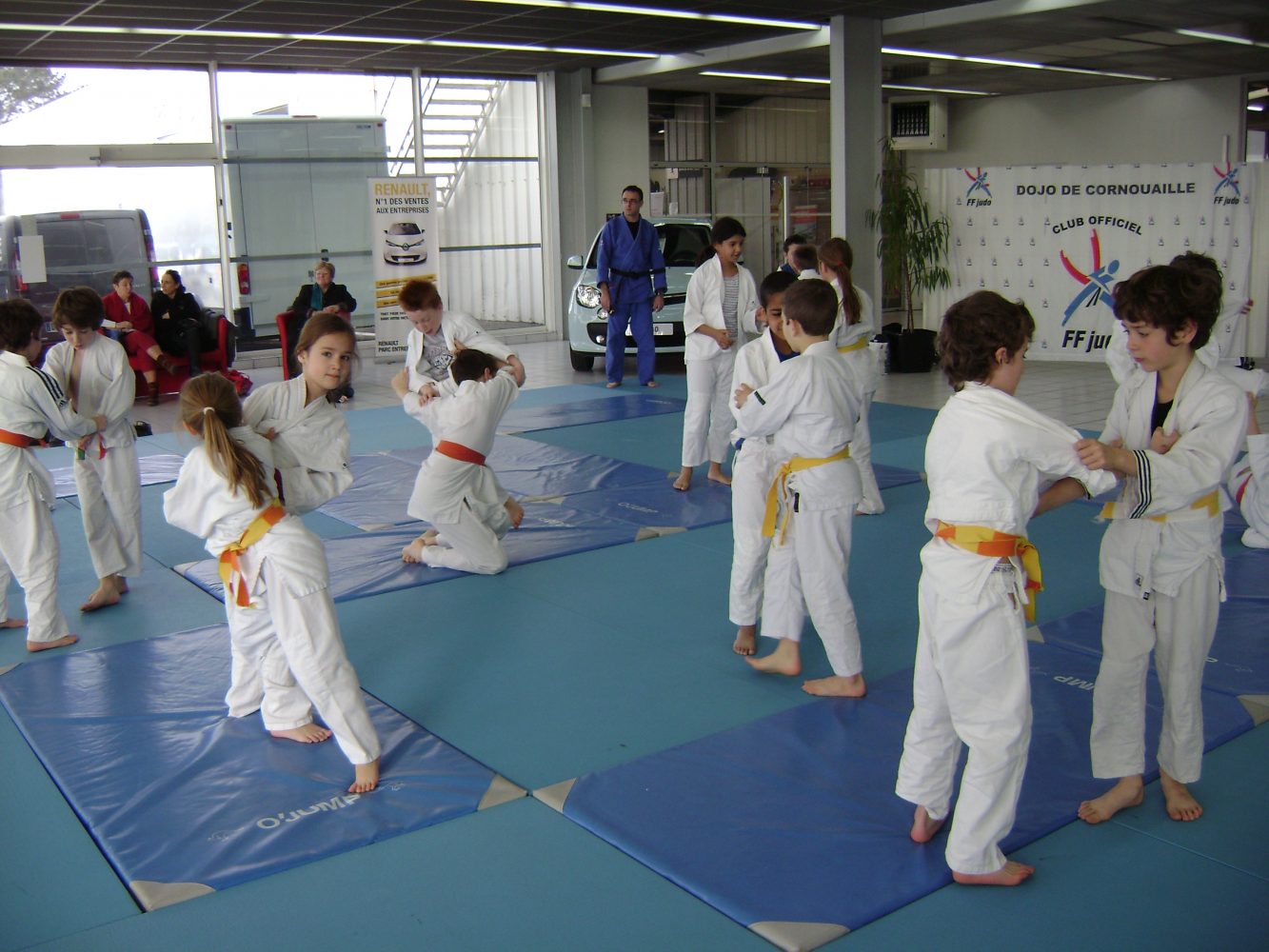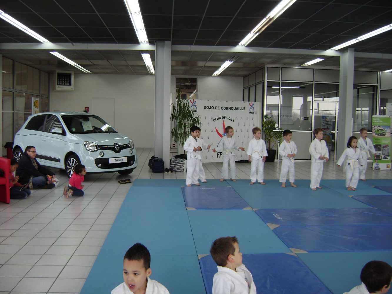 Le dojo était invité par RENAULT Quimper ( les garages de l’odet 2 Rue Rontgen 29000 Quimper ) pour faire des démonstrations, dans le cadre d’une campagne nationale avec comme parrain TEDDY RINER .