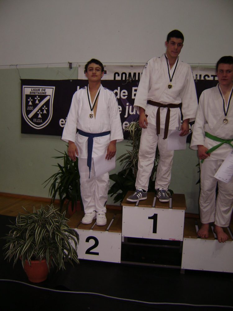 Dimanche 28 Mars 5 minimes du Dojo de Cornouaille participaient au championnat de bretagne. En -73kg Une belle competition pour Gueram Razharian qui se classe second synonyme de qualification direct aux interregions. A noter qu’Henri Ravallec et Benoit Lehenaff seront aussi présent en tant qu’officiels le 25 Avril à Vitré.