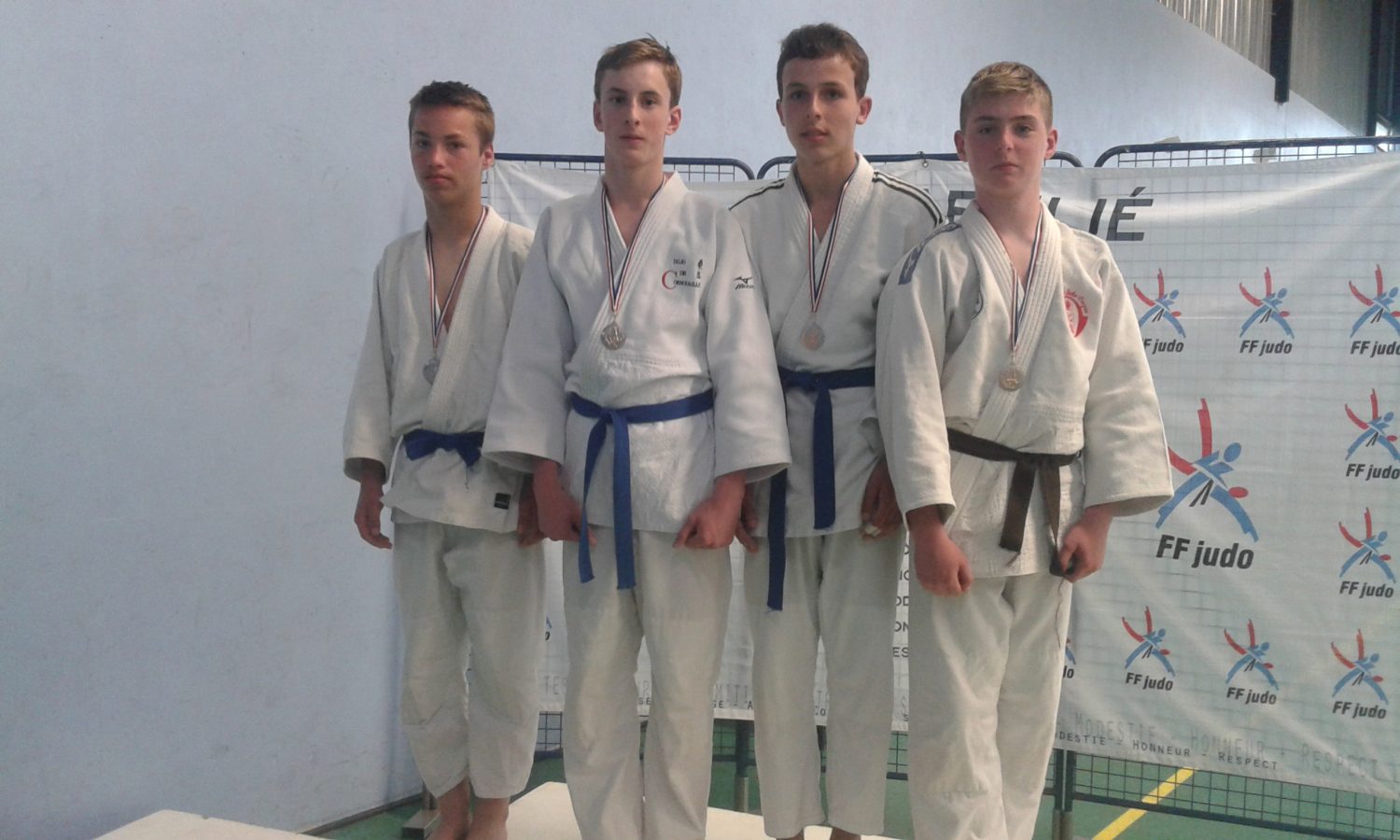 Les 4 Titres chez les garçons: -46kg Evan Leclerc, -50Luke Jaouen (troisième l’an dernier),-55 Steven Rio (sixième l’an dernier), -66 Valentin Lucas