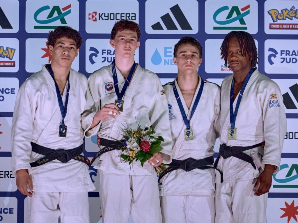 – Elyes EXMELIN (-73kg), quant à lui, réalise une très belle compétition et finit 3ème. . Bravo à lui !!!!