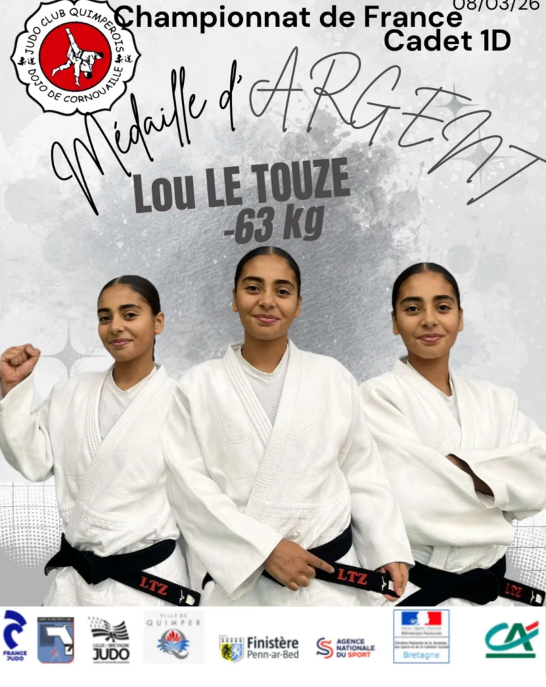 – Lou LE TOUZE (-63kg) réalise une très belle compétition et monte sur la 2ème marche du podium . Un grand bravo à elle !!!