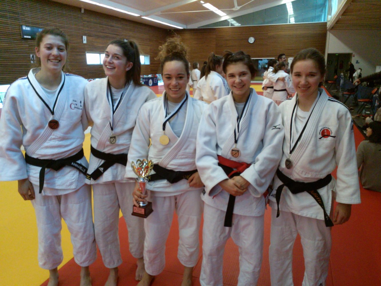 Le Dojo de Cornouaille, et ses combattantes Chloe Adam, Pauline Bourhis et Annaelle Cornec (ainsi que Juliette loncle -48 (Dinan) et Solenn Houssais (-57) Dojo des Abers) étaient encore présentes.