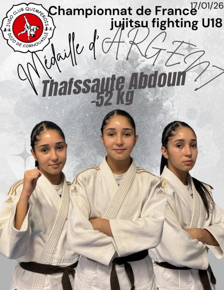 Thafssaute a démontré à l’Arena de béthune-Bruay une technique et un engagement exemplaires sur le tatami. Elle termine vice -championne de France Jujitsu Fighting U18. Un grand bravo !
